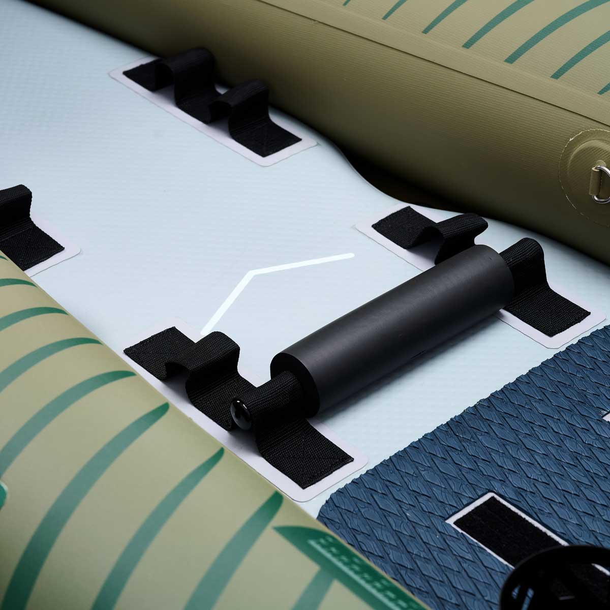 La struttura combina 2 camere laterali a bassa pressione + 1 fondo drop-stitch da 7 cm, garantendo rigidità eccezionale, stabilità e sicurezza. Le camere laterali saldate aumentano la galleggiabilità, mentre il fondo rigido consente di pescare in piedi con grande controllo.