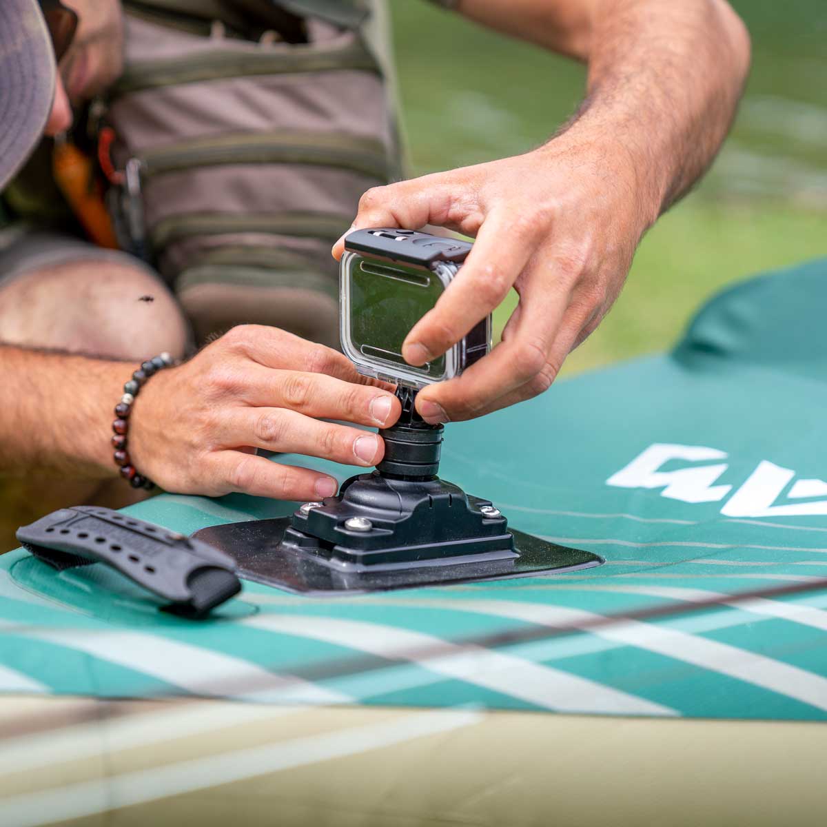 - Base di montaggio universale per accessori (rod holder, fishfinder, action cam)